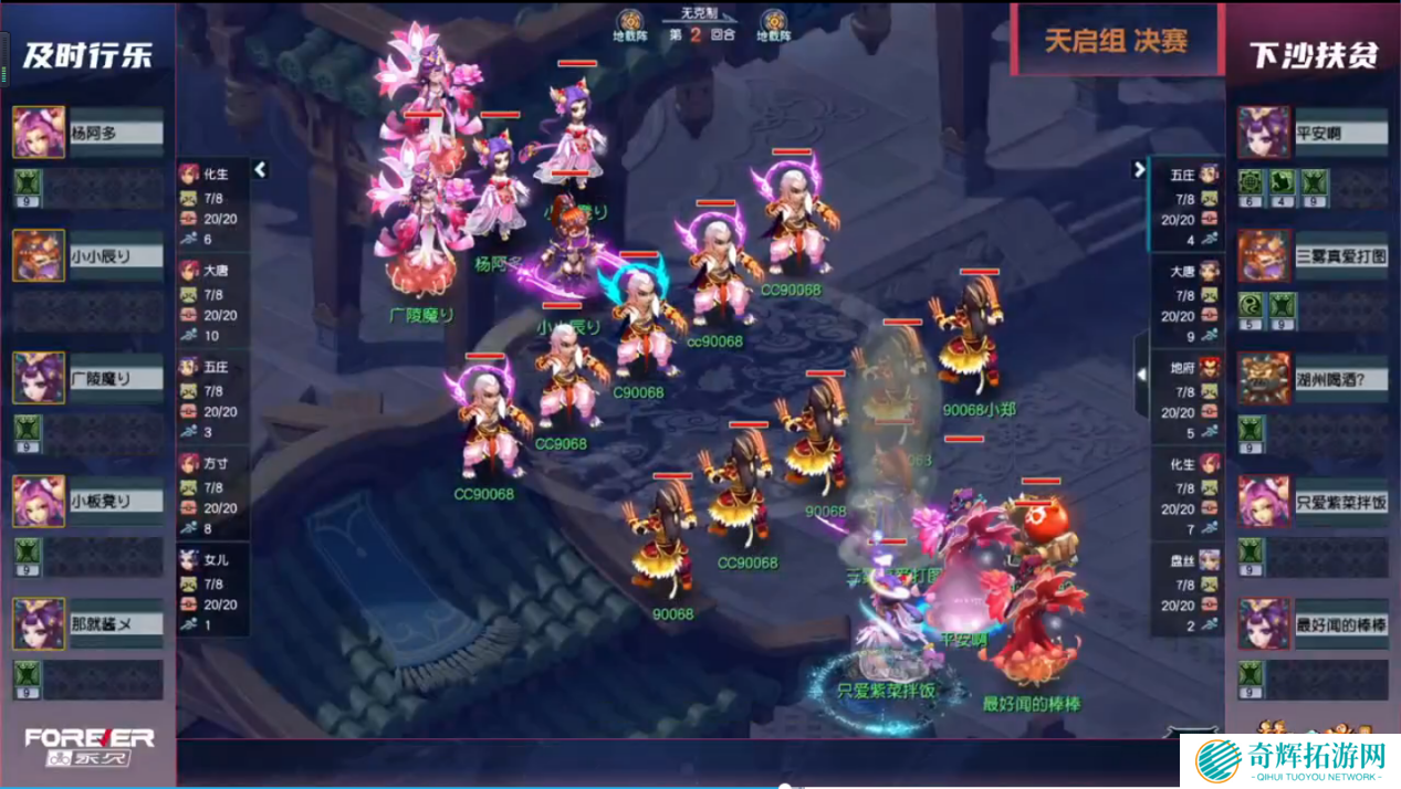 天启组决战双方也是老相识了,而且几乎每次比赛都是下沙扶贫力压及时行乐一筹。在本场比赛中,及时行乐拿出了“五庄、方寸、女儿”三封四保一阵容,下沙扶贫则是采用了“五庄、盘丝”的双封四保一。