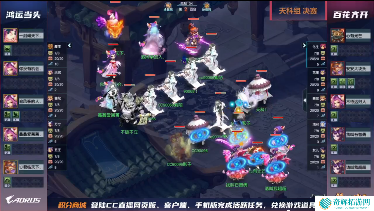 虽然对战方齐开得胜拥有地阵大克虎阵的优势,但鸿运当头的输出非常给力。在进入决胜时刻前,齐开得胜普陀、化生寺、花果山、女儿村的宝宝均以不足。最有趣的是,齐开得胜拉出的小夜连续试图点杀鸿运当头五庄观,这波操作不仅没有成功,还导致己方血线处于危机状态。最终,鸿运当头凭借魔王的一波群秒将齐开得胜花果山收掉,拿下比赛胜利。