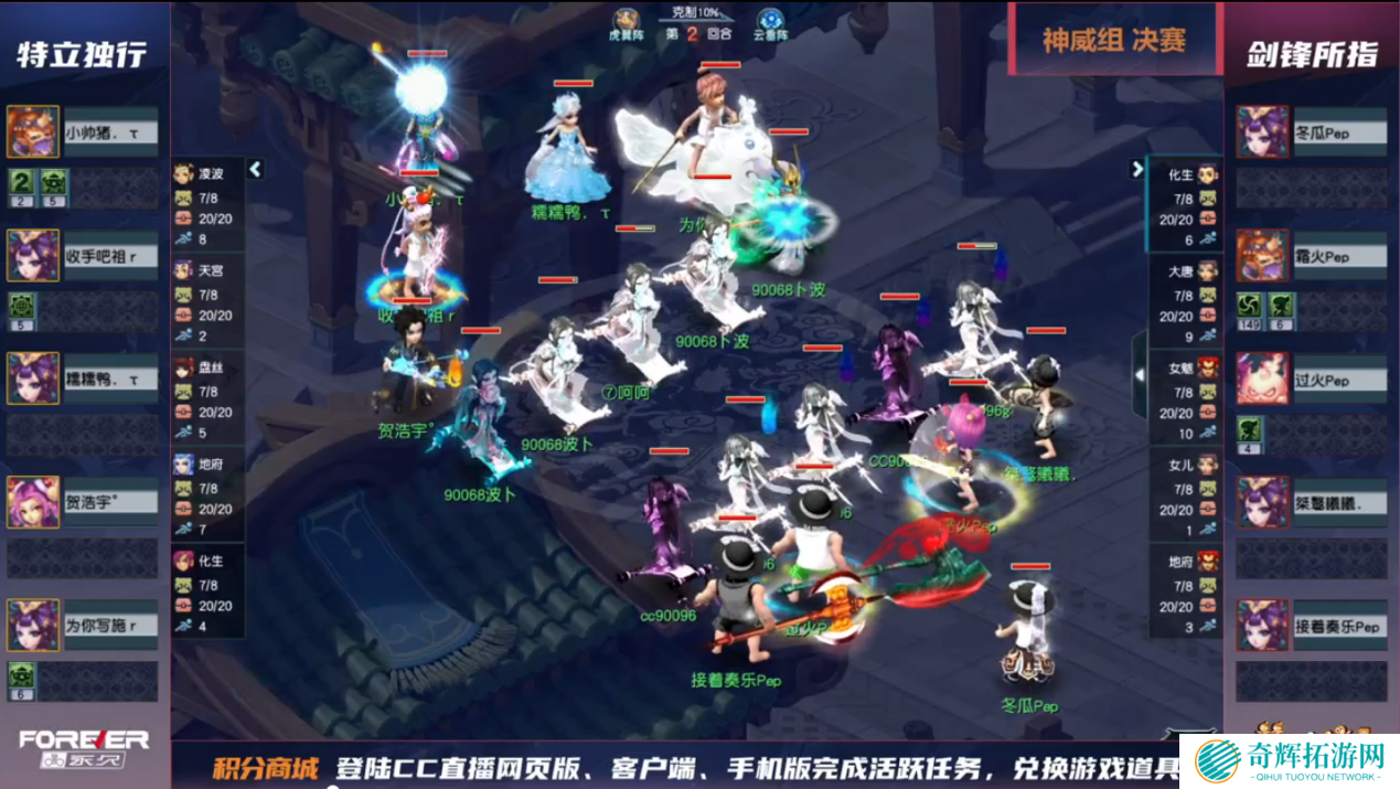 虽然双方都选用了点杀阵容,但在持续的拉锯战中谁都没有占到便宜。总的来说,特立独行的药品存量、召唤兽存量在到达决胜时刻时优于剑锋所指。剑锋所指要想翻盘,需要大唐官府的灵宝点杀。