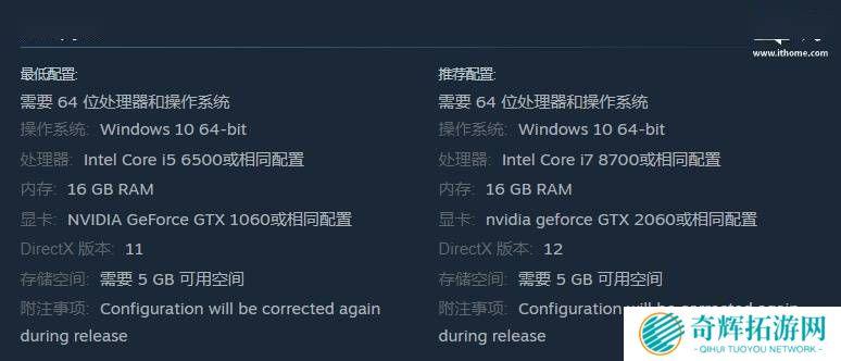 在配置方面,《琉隐神渡》对硬件的要求并不算太高。最低配置仅需64位处理器和操作系统、Windows 10 64-bit系统、Intel Core i5 6500或相同配置的处理器、16GB RAM内存、NVIDIA GeForce GTX 1060或相同配置的显卡以及5GB的可用存储空间。而推荐配置则要求更高一些,包括Intel Core i7 8700或相同配置的处理器、nvidia geforce GTX 2060或相同配置的显卡以及DirectX 12版本等。