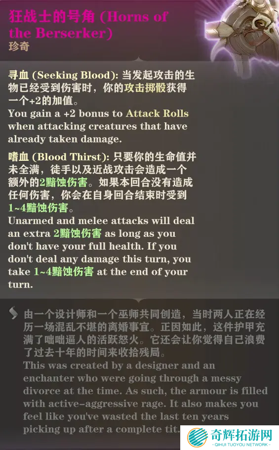 适合近战职业,特别是打不满血的敌人时,能提供额外的命中加成和附加伤害。