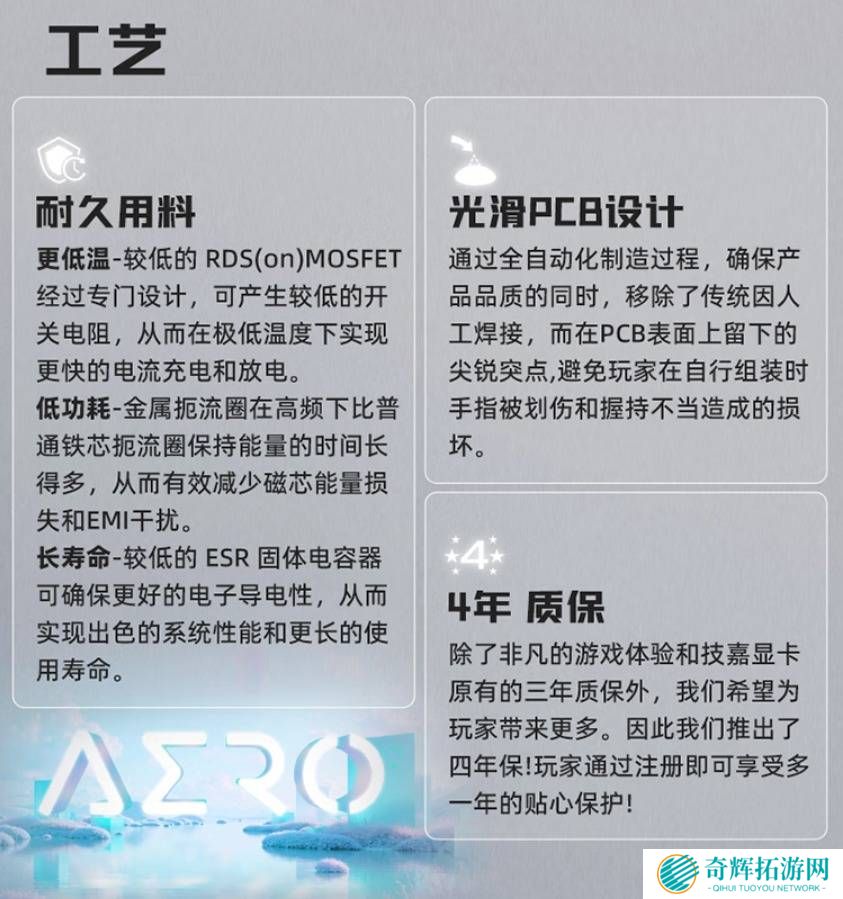 作为大品牌,技嘉在做工和售后服务方面同样值得信赖。技嘉雪鹰GeForce RTX 5070 AERO OC 12G显卡在做工上相当考究,用的都是顶级用料。同时,技嘉还为显卡产品提供长达4年的延长保修服务,玩家通过注册即可享受多一年的贴心保护。最重要的是,技嘉还提供个人送保服务,为玩家提供了更加便捷和贴心的售后保障。