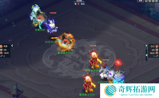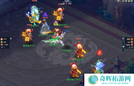 【北方17队】试图通过落魄符来限制【天雷滚滚】的行动,但这一策略却意外地为对手创造了反击的契机,使得【天雷滚滚】能够趁机使用五龙丹解除异常状态,并转而展开攻势。第5回合,【北方17队】遭遇了重创,两只召唤兽同时被击飞,这无疑是对其控场战术的一次重大打击,让依赖召唤兽与封印技能配合取胜的方寸陷入了巨大的劣势之中。【天雷滚滚】在确立优势后,并没有急于扩大战果,而是选择稳扎稳打,继续召唤新的召唤兽,以确保召唤兽阵型的完整与强大。这一决策极为明智,因为在PK中,召唤兽不仅是输出的重要来源,更是战术执行的关键力量。即使【天雷滚滚】的核心角色偶尔遭到封印,他依然能够依靠多只召唤兽的协同作战,保持强大的火力覆盖。这种多点开花、协同作战的战术思路,不仅有效分散了敌方的防守注意力,也为其提供了更多的进攻选择与战术变化。