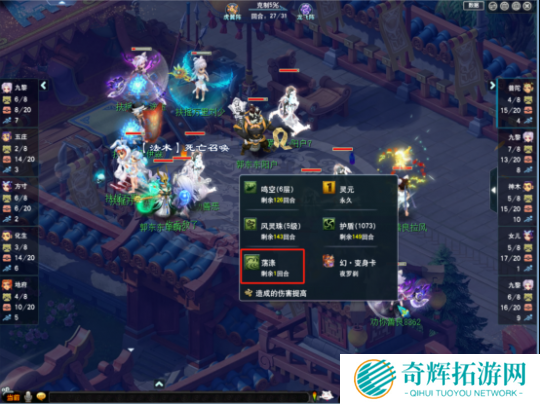 从阵容角度来看,国标体系可以通过点杀来限制九黎出手,尤其是神威的锢魂术拥有5回合的禁锢效果(使用普陀门派技能杨柳甘露复活石4回合)。