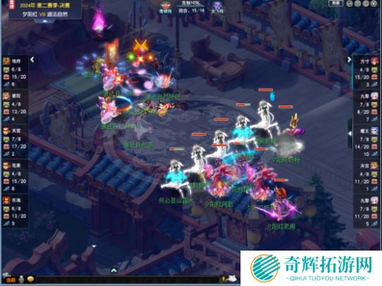 夕阳红战队的夺冠阵容是由天宫、方寸、九黎、九黎、魔王五个门派组成,他们的对手道法自然战队则是以天宫、普陀、花果、东海、地府的神威主流国标体系迎战。