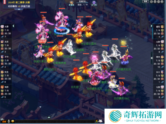 劝你善良的双九黎三攻阵容是由女儿、普陀、九黎、九黎、神木组成的。他们的对手扶摇万里则是选择了方寸、五庄、化生、地府、九黎的四保一点杀阵容。