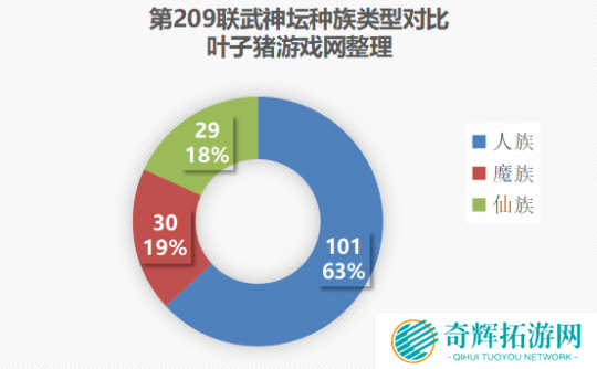 本联出战的种族类型和上联武神坛差距不大,其中人族最多(参战比63%),魔族次之(参战比19%)、仙族最少(参战比18%)。这个数据表明,人族门派的地位非常高,这就导致与之搭配的装备价格势必会长期处在一个稳定的区间,有需要的小伙伴可以根据自身情况选购。