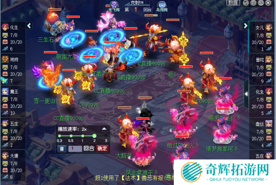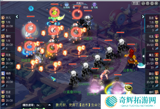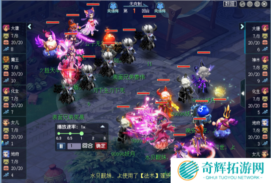 14回合【生日快乐】盘丝禁疗【西栅老街】女儿,随后群秒将其击倒,但是【西栅老街】17回合反手使用咒师五行法术击倒了【生日快乐】魔王,稳住了局面。
