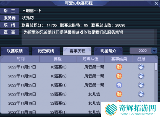 虽然聚义山庄在2022年的帮派联赛中未能如愿拿到冠军,但就目前帮派联赛整体情况而言,能击败他们的永远只有幻城。就连第四届帮派联赛表现良好的清·风,在其手下也非一合之敌。所以,他们本次遇见的可爱の,只要稳扎稳打,就能轻松获胜。