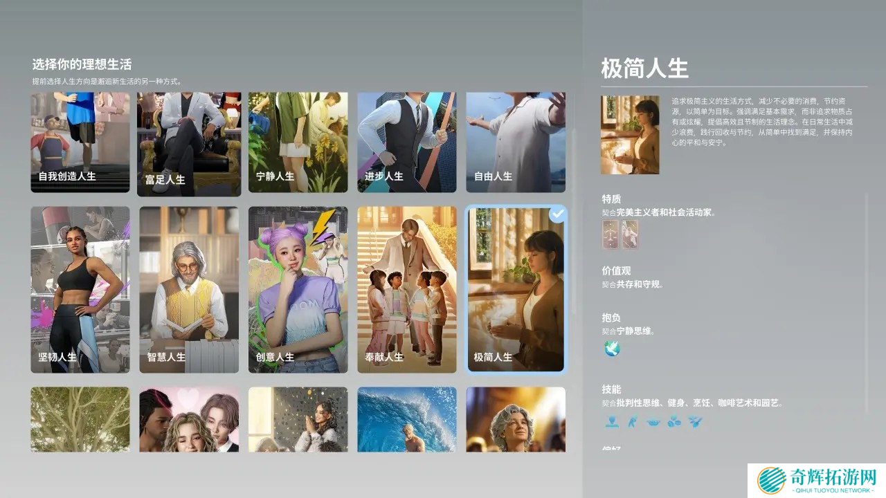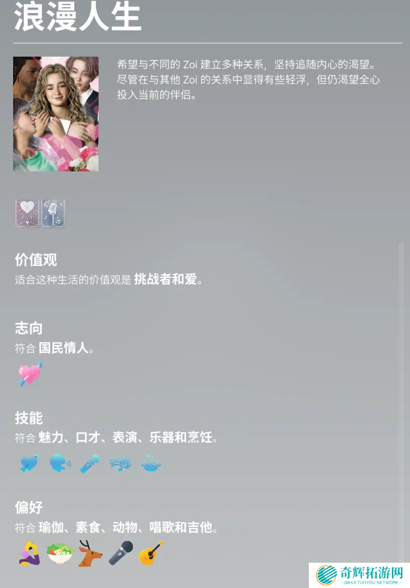 除此之外,游戏还有类似 MBTI 性格测试的系统,允许玩家为角色设定性格特质,比如: