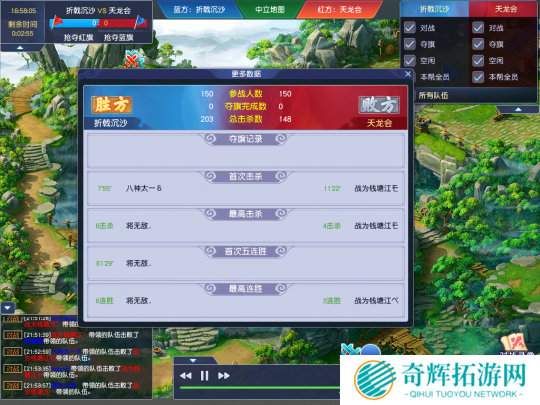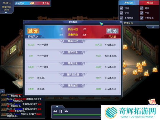 面对这样的凝聚力,折戟沉沙在拿到天龙会旗子后,立马让帮派内战力较弱的队伍全部下线,只保留了几支高端战力扩大击杀优势。比赛结束时,折戟沉杀靠着55个击败优势,成功竞技8强。