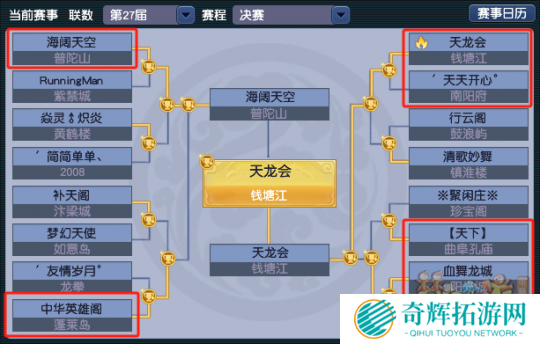 第27届帮派联赛目前已经全部结束,来自钱塘江服务器的【天龙会】凭借出色硬实力,以3:0的成绩击败普陀山服务器的【海阔天空】,登上冠军舞台。下面,就根据本届帮派联赛情况,给大家做一个简单的总结吧。