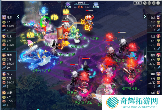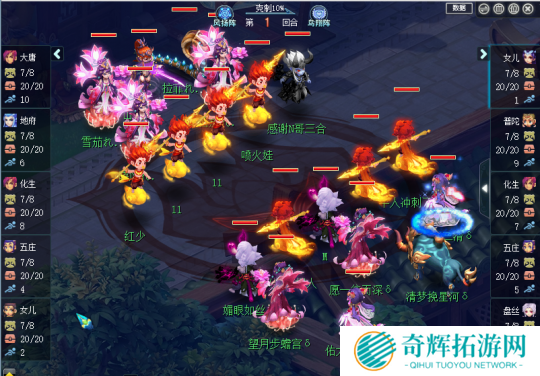生日快乐三扫大唐配合4只红孩儿,清宠非常迅速,不过曲阜孔庙也在抓紧时间布局,盘丝使用姐妹同心压制地府魔法,咒师将紧箍咒挂满生日快乐人物头顶,为之后的攻守做准备。