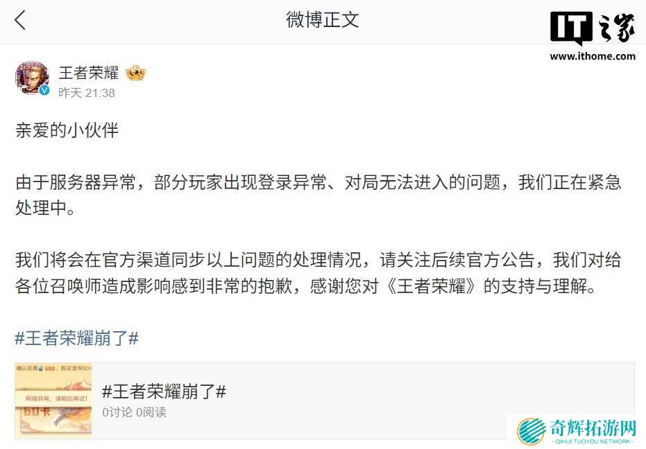 进入深夜,官方再次通过微博发布公告,表示已经成功修复了由网络异常引起的登录和对局异常等问题。他们表示,目前正在陆续开放各个服务器,但部分服务器可能仍会显示为维护中,建议玩家稍作等待。