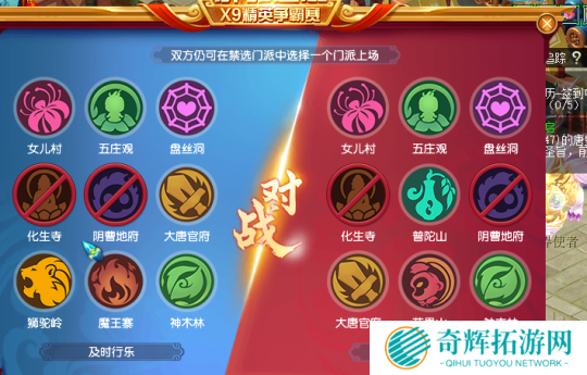 Ban选方面,凭亿近人战队和特立独行战队均ban掉了彼此的化生和地府,好在特立独行战队依旧留有普陀作为回复门派,而凭亿近人战队就不太好搭配阵容,大概率上三攻。