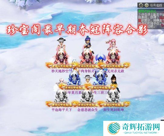 进入2019年后,珍宝阁更加无敌,一口气拿下了本年度12个武神坛冠军中的10个,其中包括一次武神坛八连冠,打破梦幻武神坛记录,冠绝古今。2019年的武神坛,可以说是完全属于珍宝阁,其中最瞩目的莫过于武神坛八连冠,此震古烁今的成就,相信在未来也难有队伍能打破。