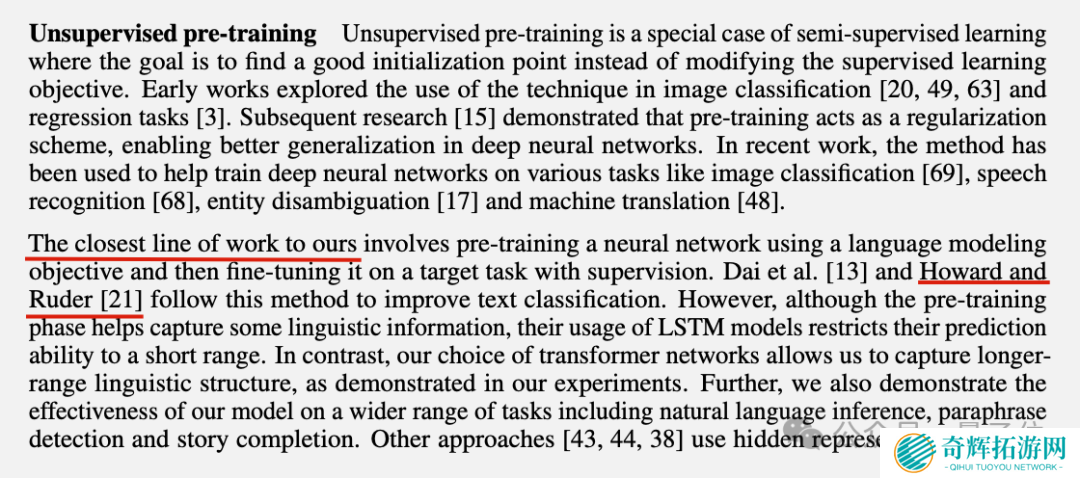 GPT-1 论文原文中,也指出“最接近我们工作的”就是 ULMFiT 与谷歌的半监督序列学习(Semi-supervised Sequence Learning)了。