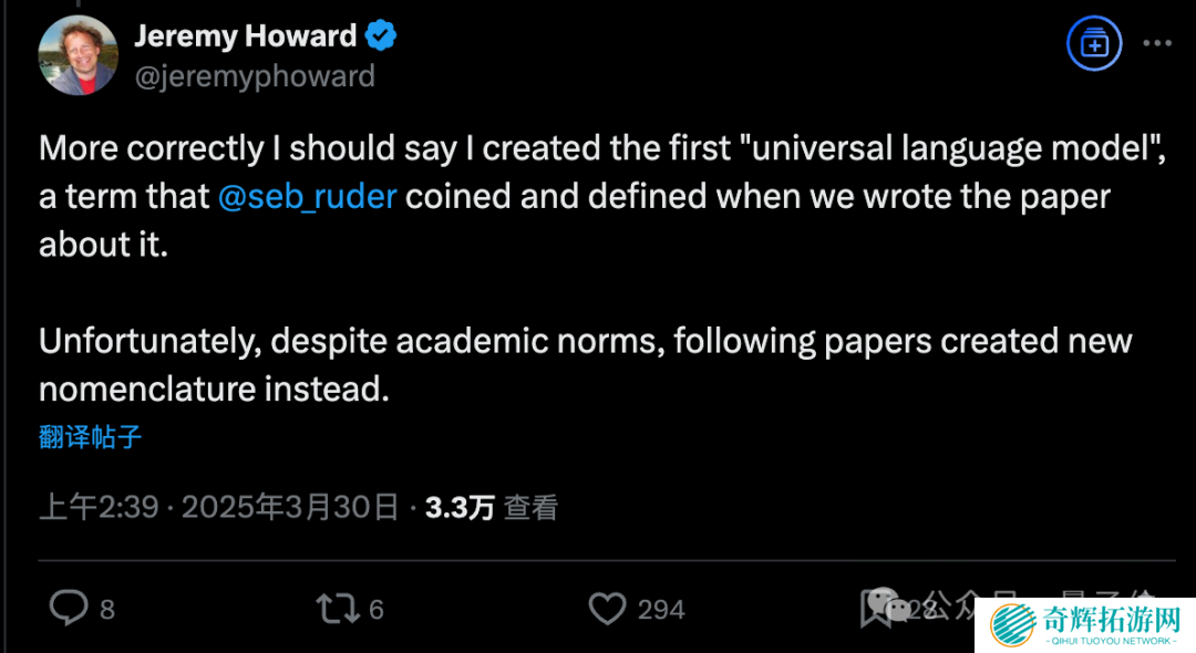 而 Jeremy Howard 本人对此的后续回应是我们创造了第一个“通用语言模型”,但后续论文没有沿用,反而创造了“大型语言模型”这个新术语。