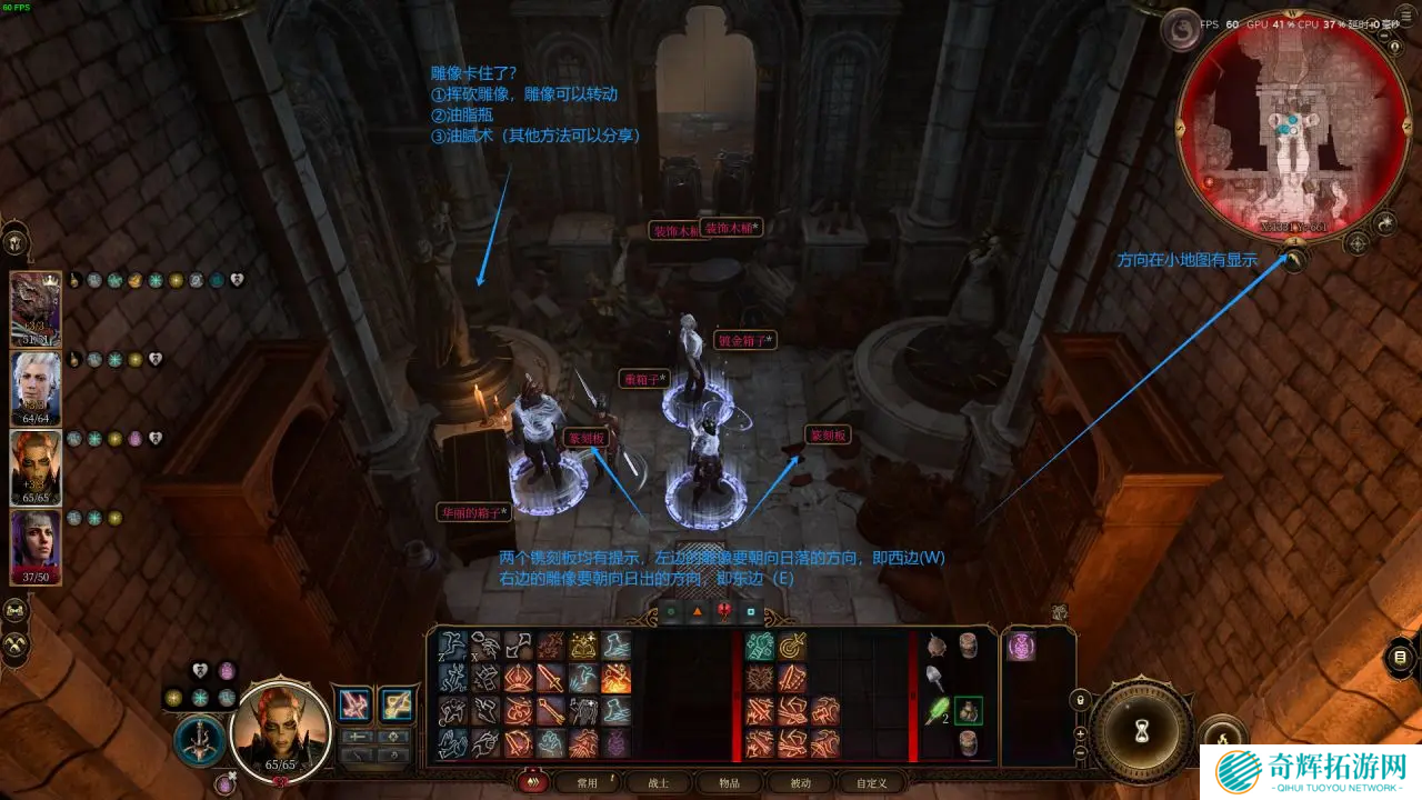 5、如果雕像卡住了,别急,可以用油脂瓶或者油腻术来帮助雕像滑动。