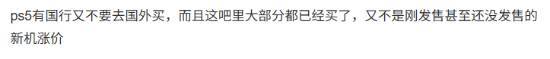 也有人对此并不在意,认为PS5有国行,不需要去国外买,而且现在也不是刚发售时的涨价,影响不大