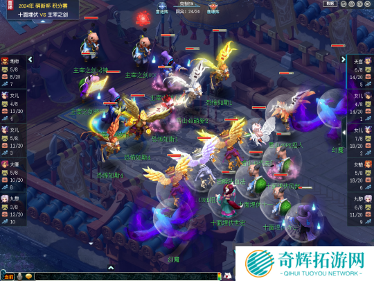 比如,沂水雪山服务器的【十面埋伏】战队就对“双女儿”阵容有着极深的理解。他们在输出门派上选择了“双九黎”、“九黎女魃墓”、“花果九黎”和“花果女魃”等体系,多样化的输出体系使其在面对不同对手时可以灵活调配,这也是其在首日拿下三连胜的秘籍!