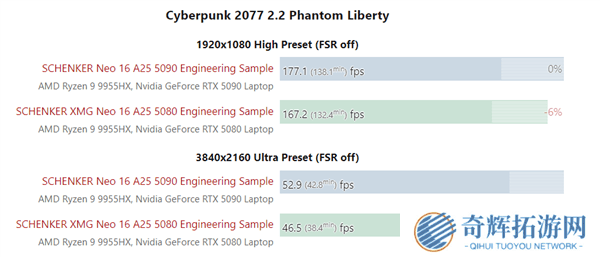 对于追求性价比的消费者而言,这一测试结果或许提供了一个新的考虑角度。虽然RTX 5090在性能上占据优势,但RTX 5080以其相对较低的价格和相对接近的性能表现,成为了一个更具经济性的选择。对于不需要顶级性能、但又希望获得良好游戏体验的用户来说,RTX 5080笔记本或许是一个更为合适的选择。