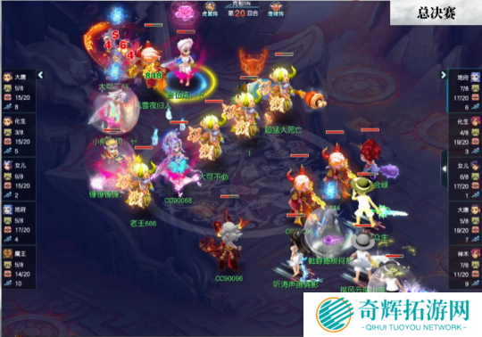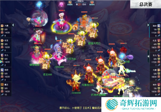 比赛第21回合,钓鱼岛绝命一搏,利用魔王寨“魔焰滔天”技能打掉珍宝阁大唐官府大量血线,随后善恶攻宠成功补刀,暂缓比赛局势。