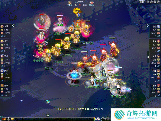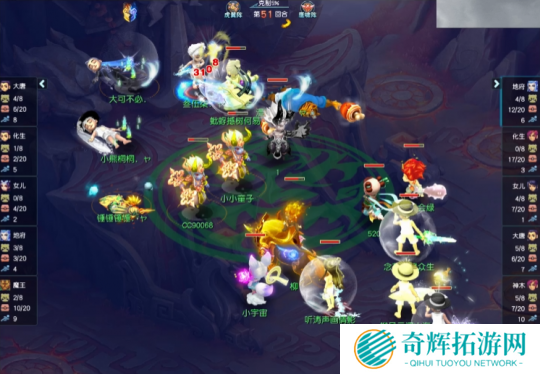 【珍宝阁】阵容:地府、化生、女儿、大唐、神木,阵法选择为鹰啸阵。