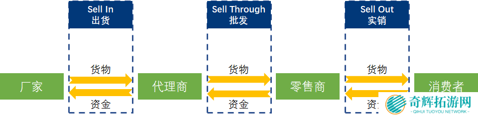 Sell In-出货,指的是货物从厂家销售给代理商,对应的资金流向是从代理商到厂家;