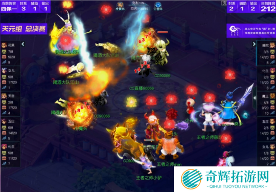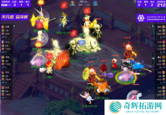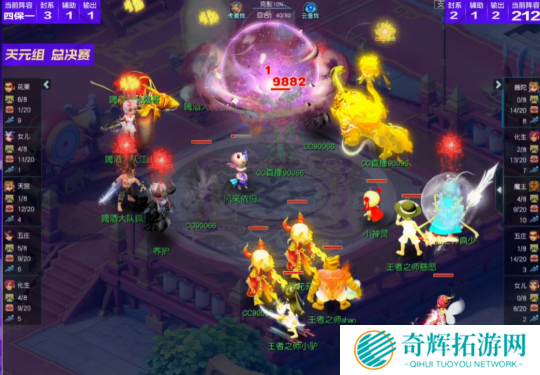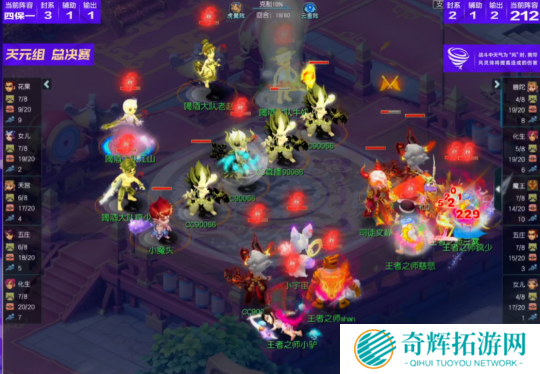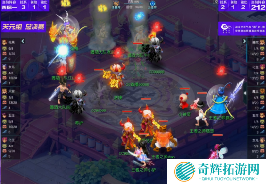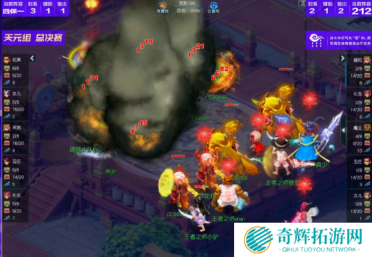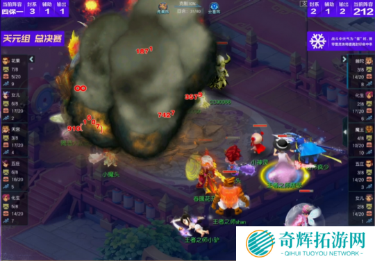 比赛第18回合,喝酒大队花果山再度飞秒,这波输出下来不仅送走了王者之师女儿村,还打掉了咒师普陀、五庄观大量血量,拿到了一定优势。