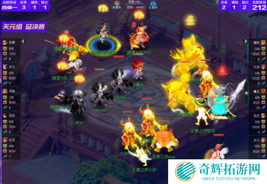比赛一开场,双方均以清宠为主。就清宠效率而言,喝酒大队在花果山的加持下,效率明显高于王者之师。