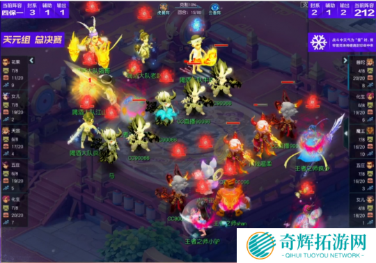 比赛第16回合,喝酒大队抓住机会,利用花果山泼天乱棒强点王者之师女儿村。这波点杀虽然打出了成吨伤害,但被其通过“神佑”武器逃过一劫因此也变成了白送愤怒的操作。
