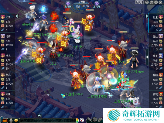 比赛开场后,双方均使用了龙飞阵,无阵法克制关系。不过,荃美月好依靠女儿村的门派优势拿到了全场一速,珍宝阁则是依靠硬件优势拿到了物理一速。