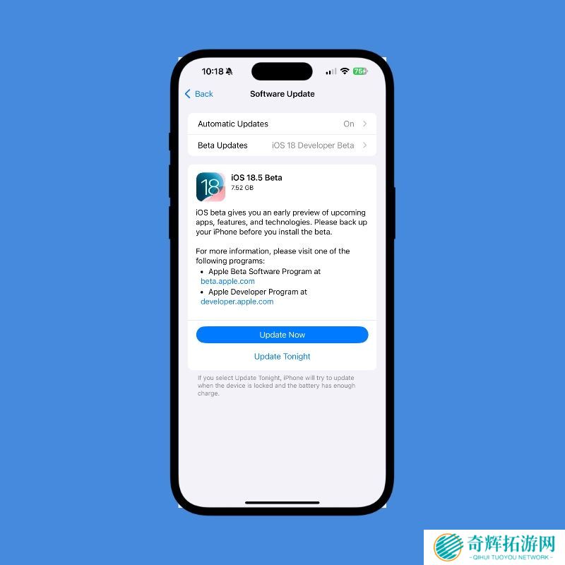 苹果在 iOS 18.4 正式版发布两天后,紧接推出 iOS 18.5 和 iPadOS 18.5 的首个开发者测试版。用户可通过兼容设备的“设置-通用-软件更新”下载安装。