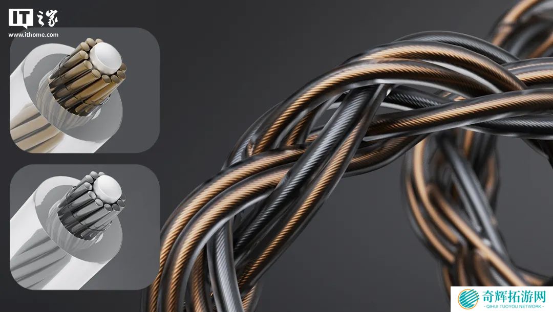 线身由 8 股 HIFI 专用特质线编织而成,单晶铜线负责电流传输,单晶铜镀银线负责数字传输。