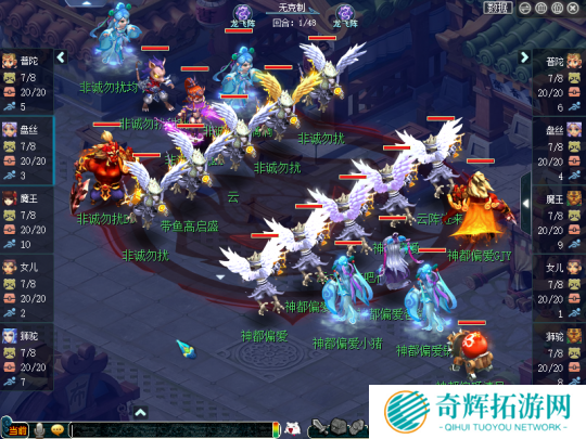 比赛一开场,双方都采用了“普陀、盘丝、魔王、女儿、狮驼岭”的“212”面伤阵容,所选阵法也均为龙阵。不过,神都偏爱的准备工作做的更足。