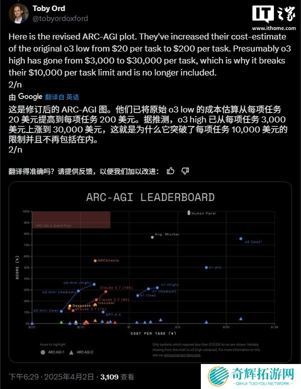 本站 4 月 3 日消息,上周,负责维护和管理 ARC-AGI 的 Arc Prize Foundation 对 OpenAI 的 o3 “推理”人工智能模型在 ARC-AGI 基准测试中的成本估算进行了重大修订,现在看起来 o3 的运行成本没有那么低。