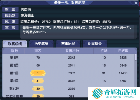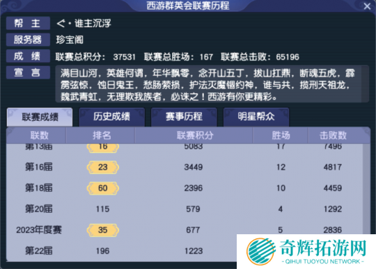 帮派联赛,转眼间已迭代近千岁月,在这个赛场上,有太多的帮派,在某一个时间段,如璀璨烟火,可是,时过境迁,却逃不开烟花易冷的结局。