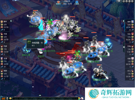 比赛进入中后期后,【德云皓子】一方略显急躁,接连几波点杀失利不仅消耗了大量回合,还被对方在海龟数量上超越了一倍有余。可以说,只要【过命兄弟】稳住节奏拖到后期,就能通过地府搭配东海渊的点杀战术拿到优势。