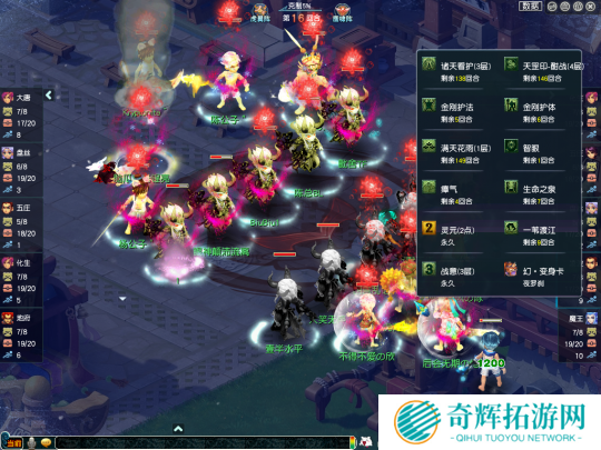 比赛开局阶段,猴哥就采用了颇为保守的打法,先是用盘丝、五庄控制对手的封印、输出门派,再利用大唐官府的横扫千军清宠。从伤害数据来看,五气这边的召唤兽质量颇为一般,不神的话很难挡住猴哥三扫大唐的蹂躏。比赛到第十回合时,猴哥的三扫大唐已经叠出12层惊锋和6层剑意,节奏非常好!