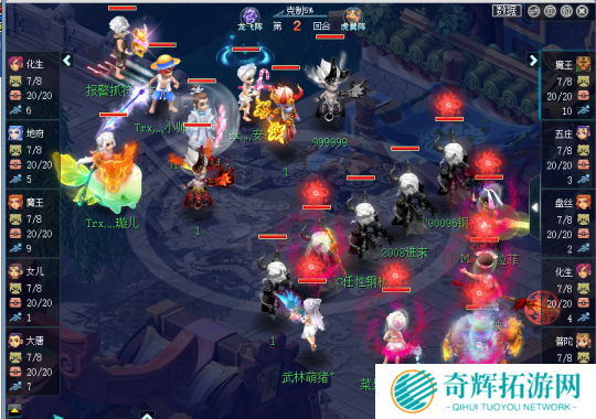 随后26回合2020盘丝禁疗2008大唐,五庄套中2008化生寺,己方魔王持续出手,将2008大唐击倒,2008多个单位身中紧箍咒倒地,完全失去了还手能力。2020乘胜追击,五庄将2008宝宝一一套中,最终33回合2020成功清场,拿下一局。
