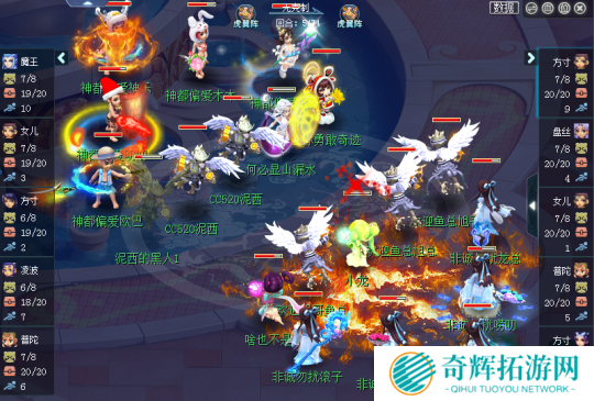 46回合偏爱战队拉出蓝光瞬法须弥试图冲掉观战,但是虎阵法防位提升了不少抗性,加上无级别项链提升的法防,一波须弥的威胁并不算大。对战方连拉2只须弥,虽然将观战方多人秒翻在地。但是观战方NR一记金刚怒目给队长魔FC,瞬间慈航普渡活起全队,这下反而是对战方神都偏爱战队宝宝数量不足了。这样很可能在决胜时刻无法保证每只宝宝都点拉自己的人物单位。