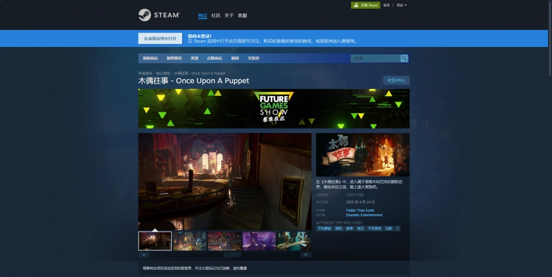 Steam平台购买链接:https://store.steampowered.com/app/1904880/__Once_Upon_A_Puppet/。