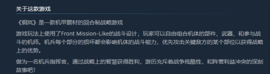 在Steam《钢岚》页面中官方还直接提到了SE的《2089?边境》,表示该游戏有类似于《2089?边境》的战斗系统。现在BlackJack Studio对此还没有任何回应。