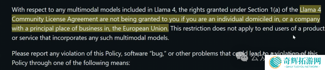 另外,这位 CEO 还在 Llama 4 的使用条款中发现了这么一条。