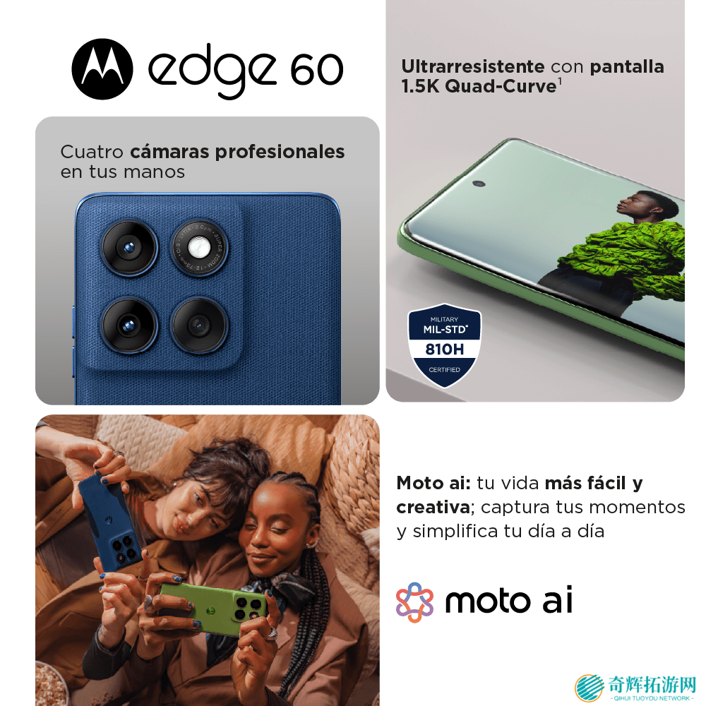 本站 4 月 19 日消息,消息源 @evleaks 昨日(4 月 18 日)在 X 平台发布系列推文,分享了摩托罗拉 Edge 60 手机的宣传物料,表明该机至少会有深蓝色和绿色两种配色,每种颜色都搭配独特的背面纹理,具备独有、高级的使用质感。