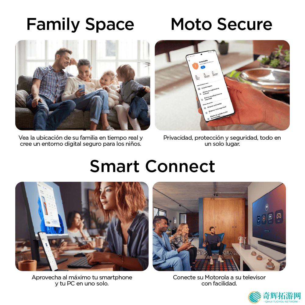 此外,设备还内置 Family Space 家长控制与位置追踪功能、Moto Secure 隐私与网络安全工具,以及支持与 Windows 设备互联的 Smart Connect 功能。