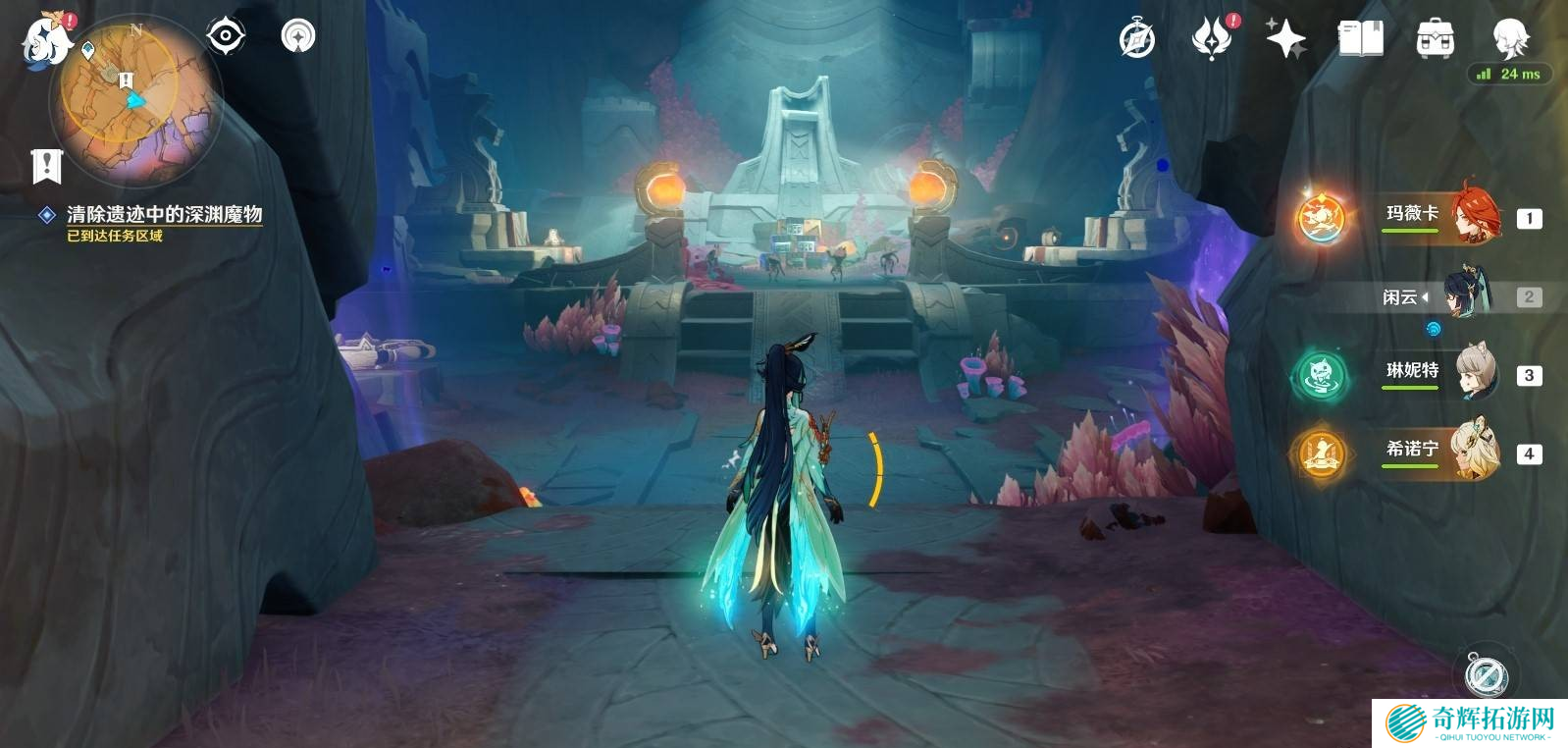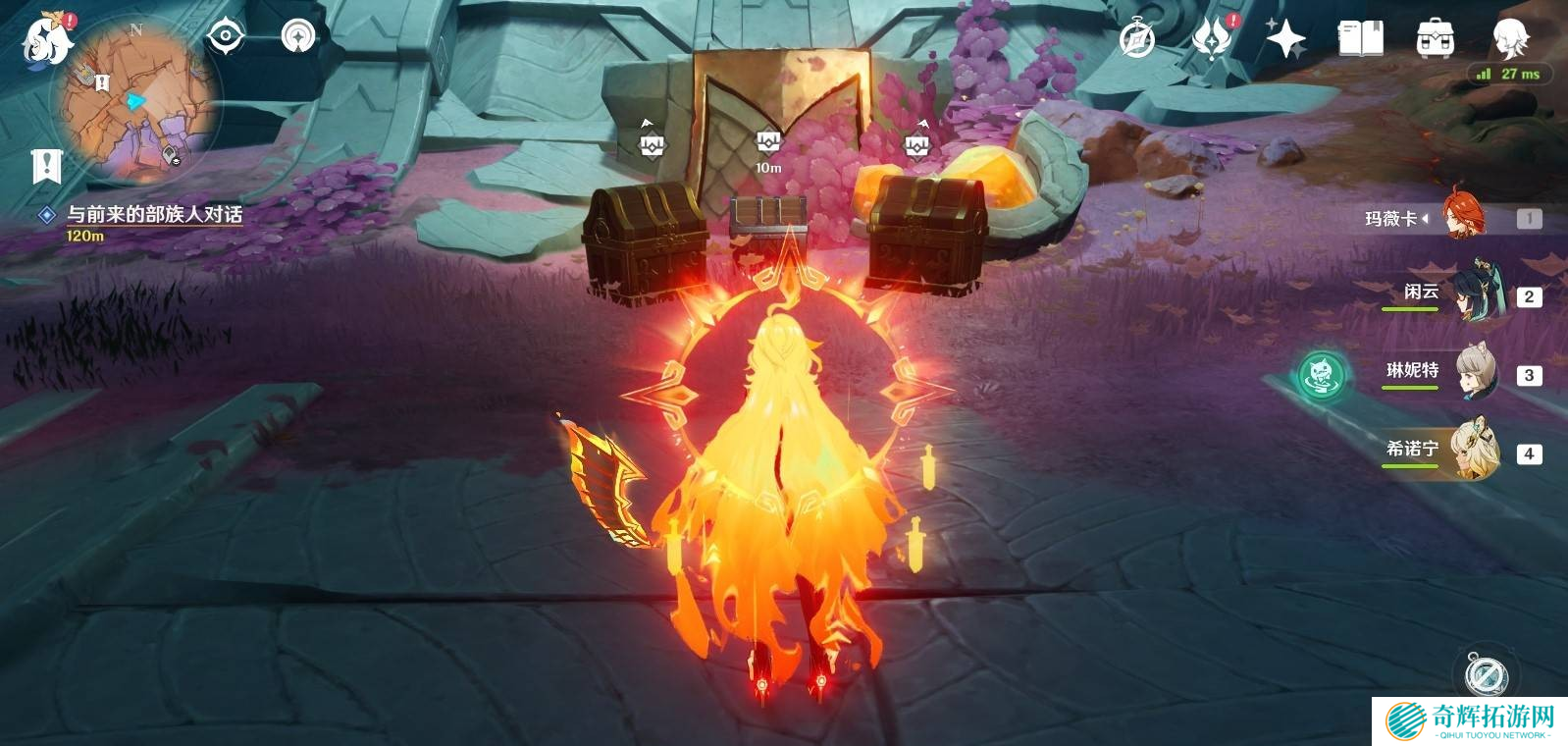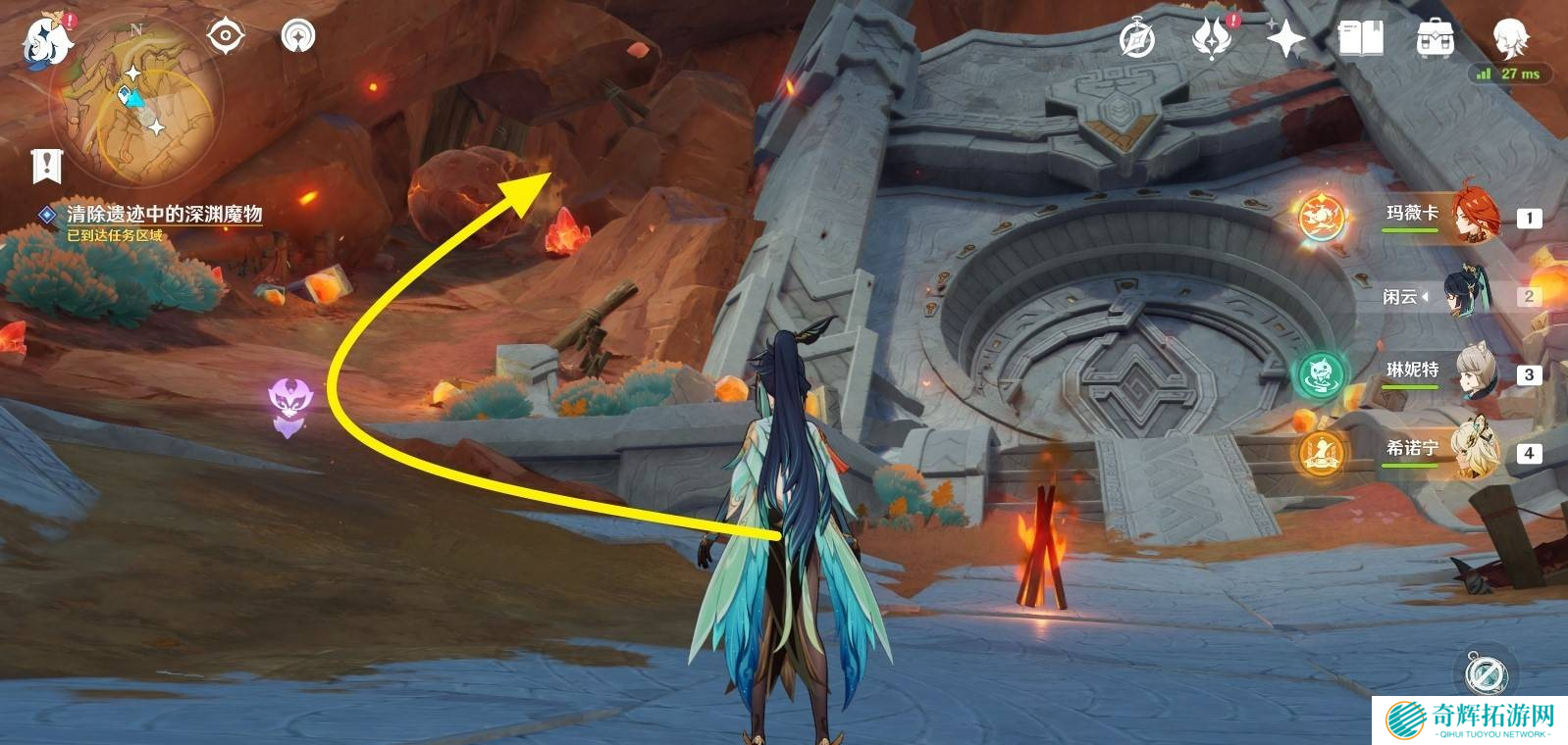 传送至任务区域后,周围会有大量丘丘人,建议优先击杀火深渊法师,破盾后可迅速清场。