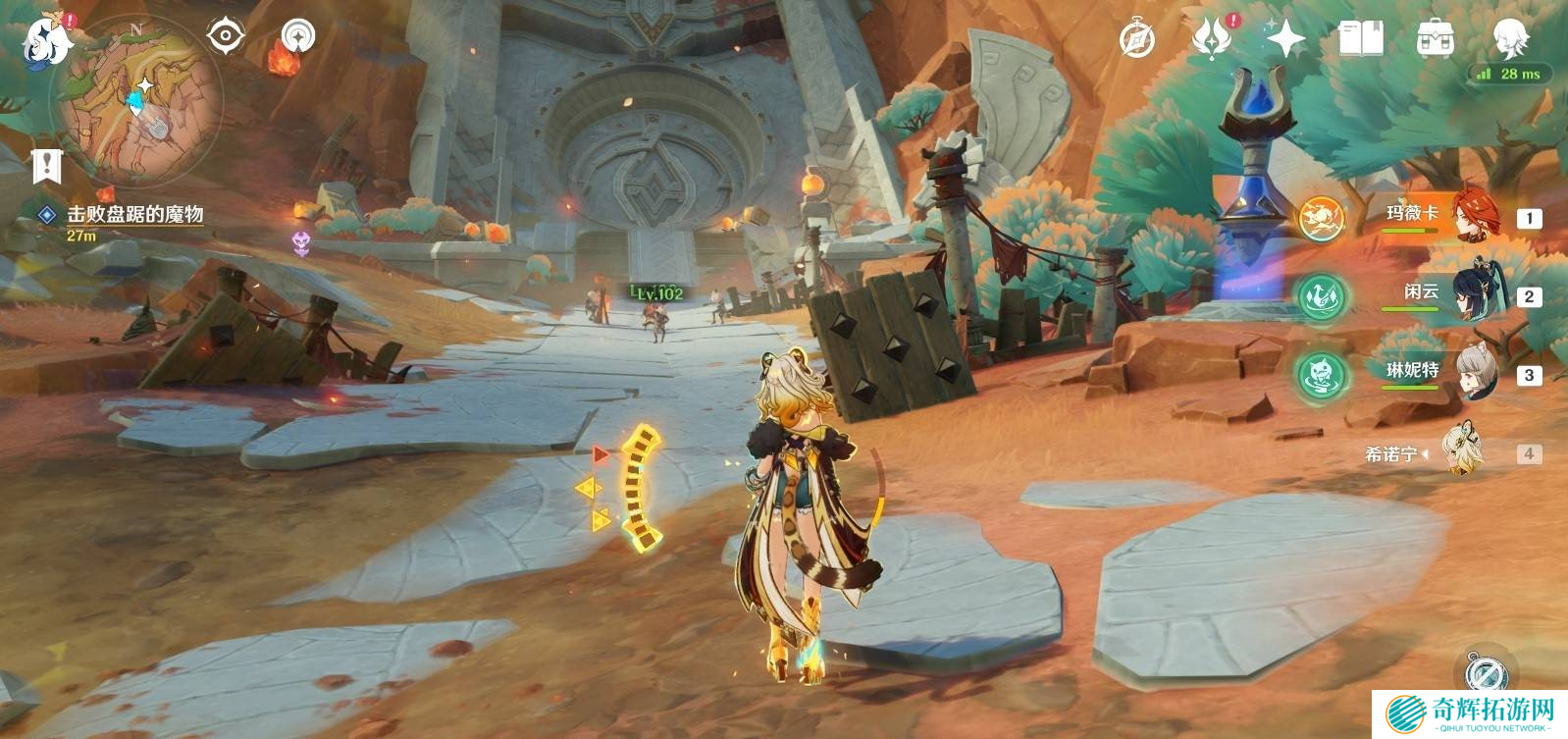 注意! 此处会出现拟态怪+丘丘人混合敌人,战斗较为激烈,建议提前调整阵容并补充食物。