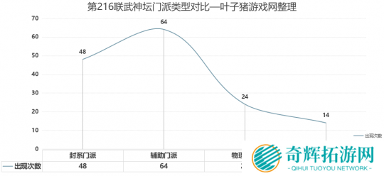 从门派类型来看,封系门派出现48次、辅助门派出现64次,占比高达74.67%。这就意味着,虽然大多数服务器以“国标点杀”阵容为主,但在门派选择上依然沿用了“以稳为主”的策略。